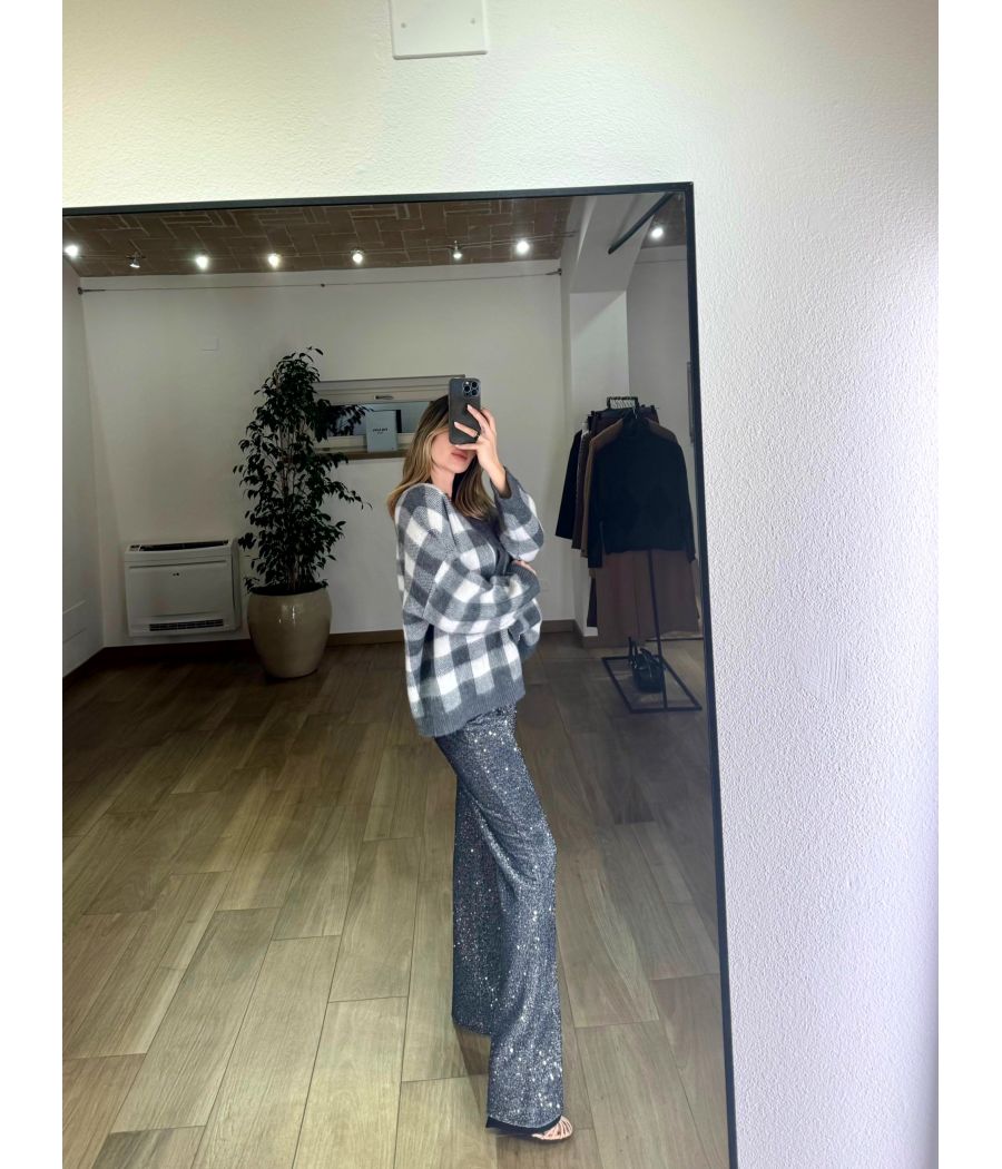 Pantalone variante grigio paillettes interno foderato elastico in vita modello a zampetta fit perfetto elasticizzato disponibile taglia S 40/42